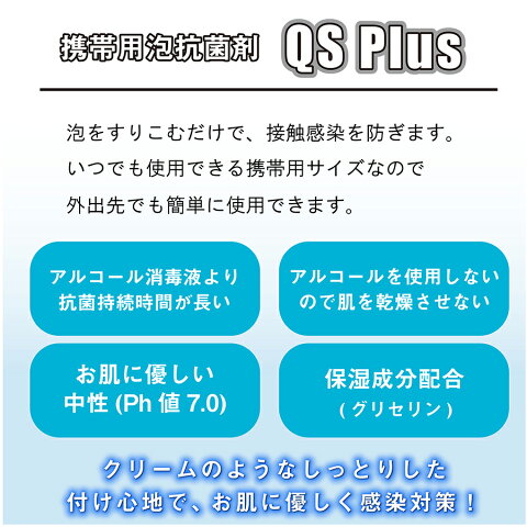 泡をすりこむだけで、接触感染を防ぐので水や石鹸が無くても安心です。